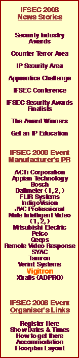 << Doktor Jon's IFSEC 2008 Forum >> << Doktor Jon's current CCTV News >> - << Doktor Jon's current CCTV / IP Video Industry News >> | ||||||||||||||||||||||||||||||||||||||||||||