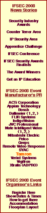 << Doktor Jon's IFSEC 2008 Forum >> << Doktor Jon's current CCTV News >> - << Doktor Jon's current CCTV / IP Video Industry News >> | ||||||||||||||||||||||||||||||||||||||||||||