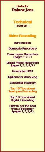 Many in the CCTV Industry would have us believe that analogue recording formats like VHS and Super VHS are only inches away from the scrap heap; and yet these highly effective, modestly priced bits of proven technology, will undoubtedly be around for some years yet. Precisely how long? Being the ever so cautious and pragmatic soul that he is, Doktor Jon not so confidently predicts that analogue tape based Time Lapse video recorders will be in use .... at least till the end of the decade..... ish! Perhaps the only noticeable thing that has changed in the last year or two, is the apparent perception of these machines as a long term investment. With rapidly reducing unit costs, and steadily increasing service charges, whereas previously a recorder could be confidently expected to operate for perhaps seven years, they are now literally regarded as disposable, with a use and replace life of perhaps three years tops. So with all thats been said, and all that we feel, what are the top ten things you must know about Analogue Time Lapse video recorders:- 1) Video recordings must be managed correctly, if they are to stand any chance of being used in a court of law. Keep em logged, and under lock and key! 2) As VHS and S-VHS are universal formats, its not a problem for law enforcement agencies to take and review an Evidential Quality tape.